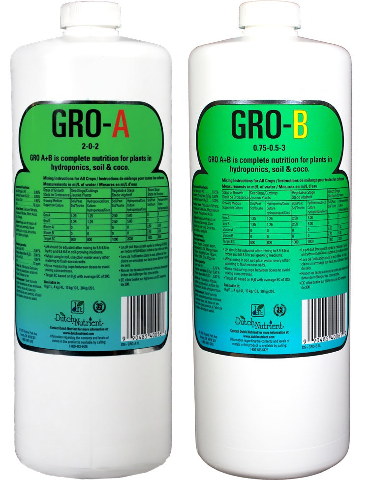 Dutch Nutrient is plant nutrition developed in Holland. It has been in existence for over 23 years and has everything required for plants to obtain optimum growth. DN is an easy to use, convenient 2-part formula for both Grow and Bloom stages which maximizes nutrient uptake.
