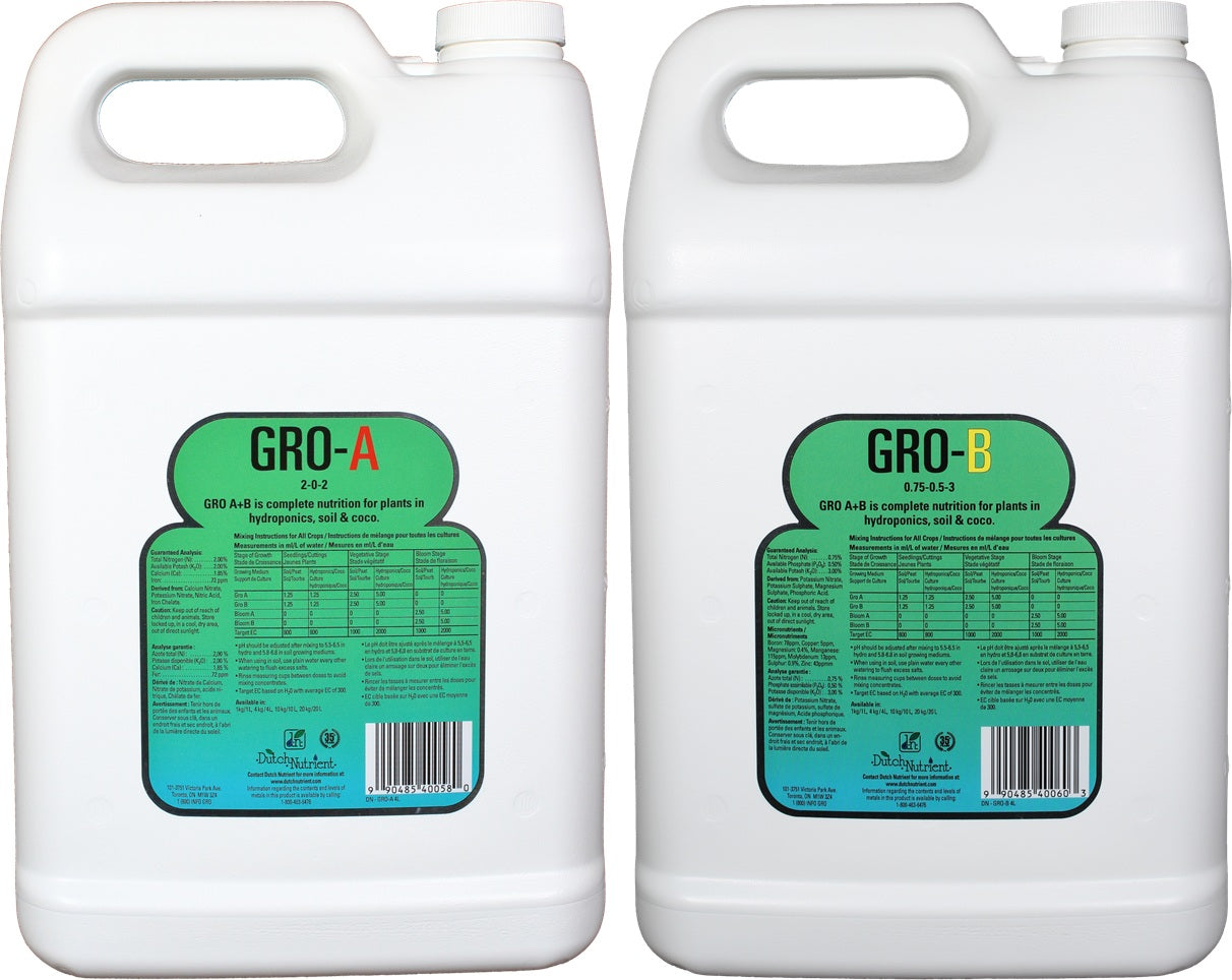 Gro A-B is an ideal mix of the highest quality minerals and nutrients available for all your seedlings and cuttings. For maximum growth, use throughout the vegetative cycle.